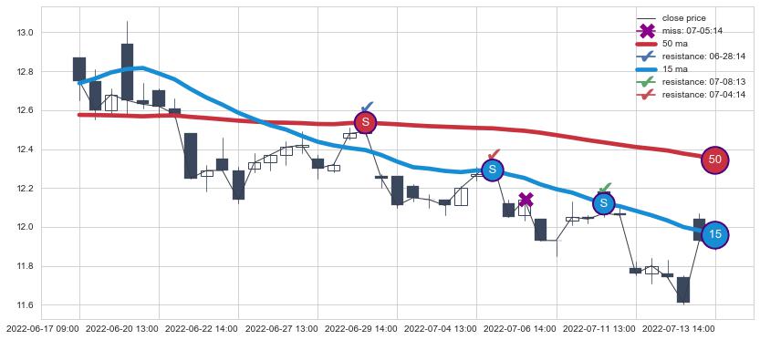 ➣ 15小时均线于(07-15 14:00: 11.95)形成【金叉】基于【金叉历史模型】预测金叉后最高波峰价格: 12.24, 金叉后最高价格13.29,已经上涨超出预测最高波峰价格, 预期回调