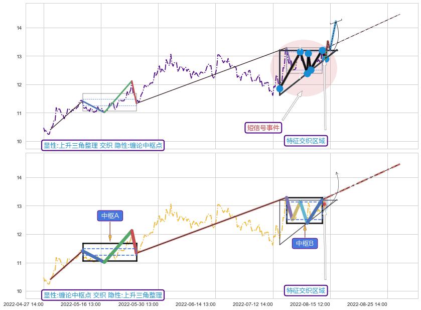 ➢ 上升三角整理属【短级别信号事件】缠论中枢点属【长级别信号事件】长短周期组合信号事件, 短长事件长度比17.01%