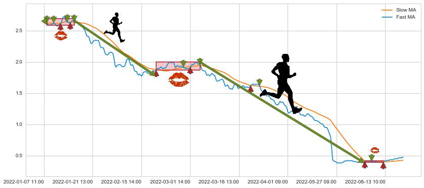 03-03 14:00至06-06 14:00 慢线与快线呈空头排列, 慢线与快线接触少,无缠绕