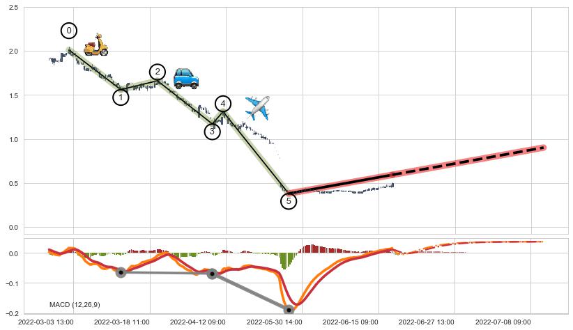 ➢ 🕰 价格走势在2022-06-09 00:00:00至2022-06-10 00:00:00期间形成底部尽头线(上山虎),残存影响值:2.70