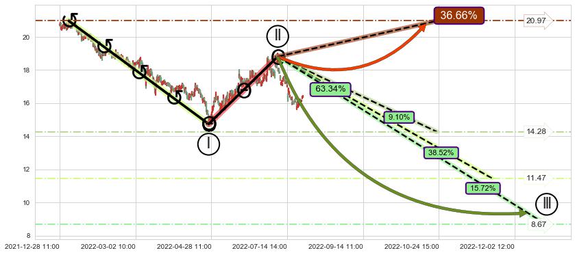 ➣ 【已确认突破】最后价格:16.39与最小【反转】第一目标价格→(08-22:12: 14.12 )相较: 下跌空间【较大】