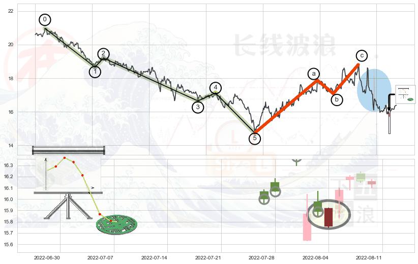➣ 波浪理论:猜想达到c点后小回调终止反转上涨 → 上涨 → 【拐点】临近 → 阶段均值回复结束后继续大周期趋势跟踪