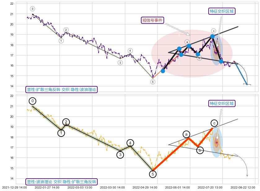 ➢ 扩散三角反转与波浪理论信号事件周期长度级别相同,同周期信号事件