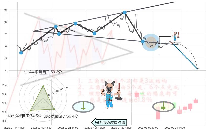 ➢ 下跌螺旋桨 🔜 扩散三角反转支撑破位转换阻力下跌 综合量化分数:43.74 【偏空】