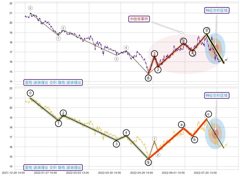 ➣ 波浪理论:猜想击穿破位c点后继续下跌 → 下跌 → 风险信号 → 小趋势跟踪
