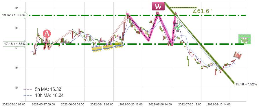 ♘ 阻力价格位17.18,可信任强度89.13%,距离最后交易2022-08-12 14:00形成的收盘价格16.39相差 +4.83%
