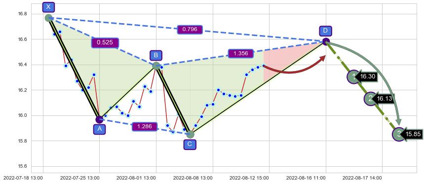 ➣ D点拟合预测价格16.58,距离最后交易收盘价格16.39相差 +1.17%