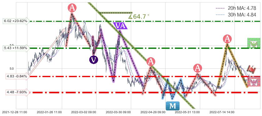 ♞ 20小时均线:4.78,30小时均线:4.84→ 快线<慢线
