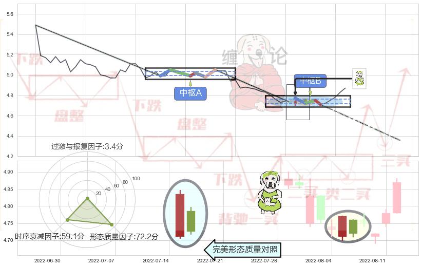 ➢ 下跌身怀六甲 🔜 缠论中枢点破位中枢B支撑下拉 综合量化分数:46.96 【中性】