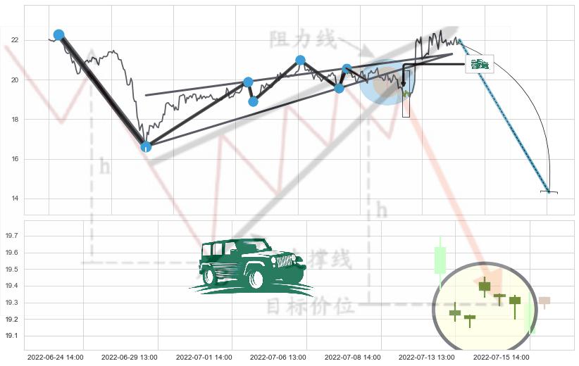 ➢ 收盘价(07-12:14: 19.47 )→再次回踩→第一根k线高点(07-06:14: 19.99 )