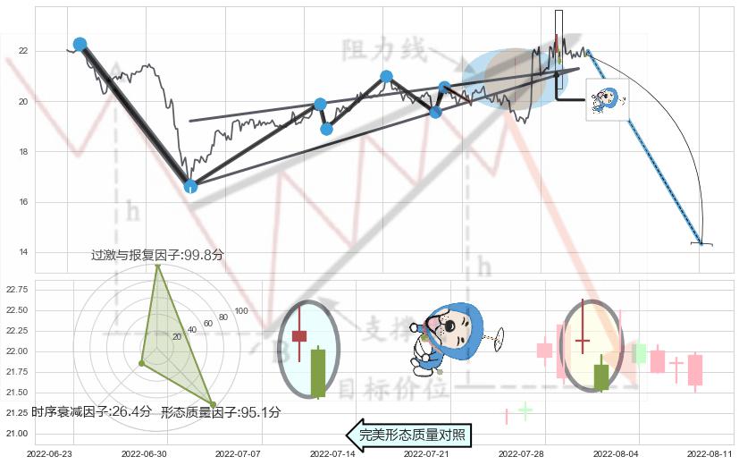➢ 🕰 价格走势在2022-08-04 13:00:00至2022-08-08 13:00:00期间形成下降三部曲(降势三鹤),残存影响值:-7.46