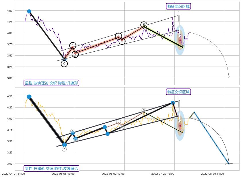➢ 波浪理论与升旗形信号事件周期长度级别相同,同周期信号事件
