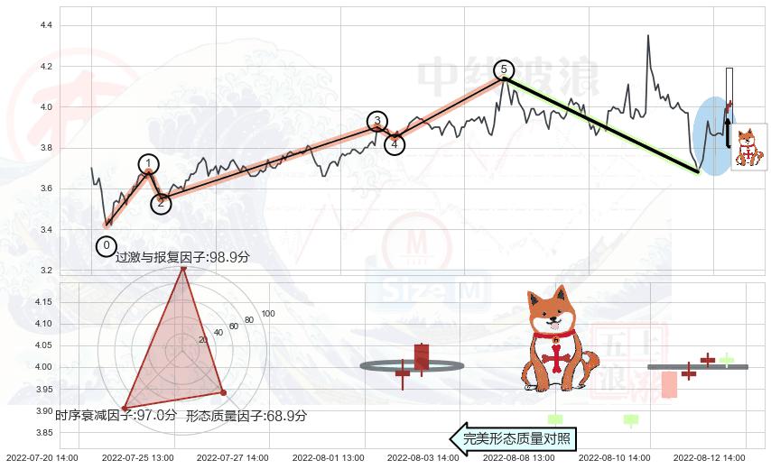 ♘ 阻力价格位4.10,可信任强度78.74%,距离最后交易2022-08-12 14:00形成的收盘价格4.01相差 +2.15%