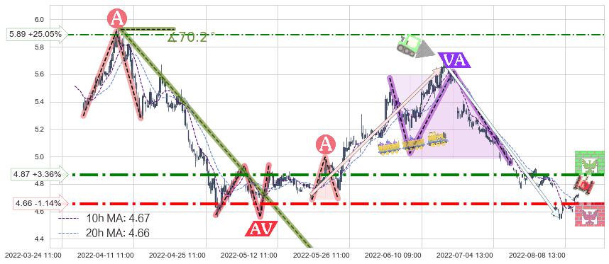 ♘ 阻力价格位4.87,可信任强度73.14%,距离最后交易2022-08-12 14:00形成的收盘价格4.71相差 +3.36%