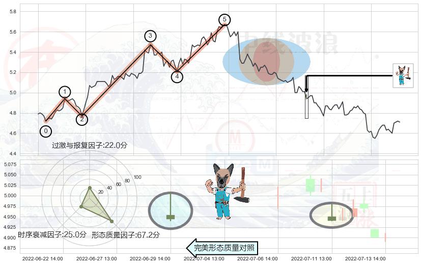 ➢ 🕰 价格走势在2022-07-11 13:00:00至2022-07-11 13:00:00期间形成看跌(高位倒锤头)流星线,残存影响值:-3.06