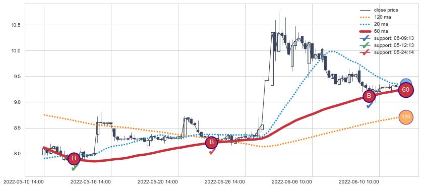 ➢ 最优均线组合共正确确认支撑阻力信号6处,正确确认率 60.00%