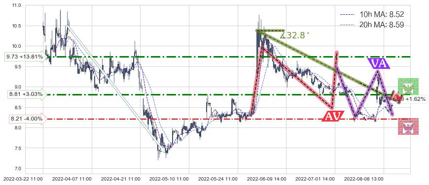 ♞ 10小时均线:8.52,20小时均线:8.59→ 快线<慢线