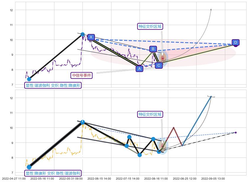 ➣ 未完成【伽利】形态起点X: 06-06:14, 已到达C点: 08-10:13, 预测最终D点: 09-08:11, 共255交易小时