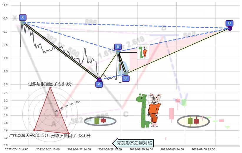 ➣ 未完成【蝙蝠】形态起点X: 06-01:10, 已到达C点: 08-10:13, 预测最终D点: 09-08:09, 共266交易小时