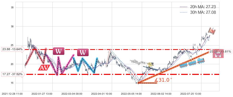 ♞ 20小时均线:27.23,30小时均线:27.08→ 快线>慢线