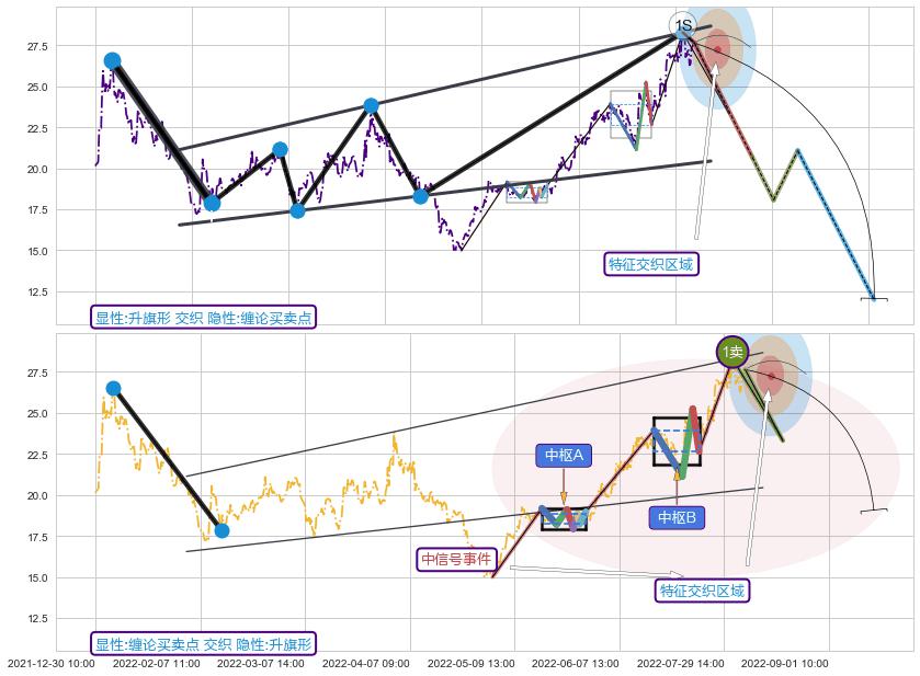 ➢ 智能识别已发生事件:缠论第一类卖点【卖❶】→(08-04:14: 28.28 )