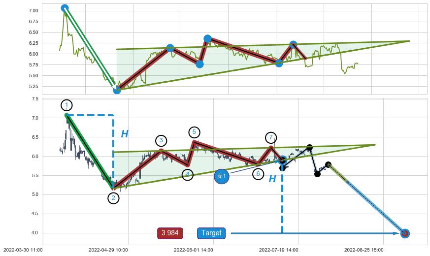 ➢ 【卖1】: 激进型 卖点→(07-06:13: 5.89 )形成突破升🚩楔型【整理】形态
