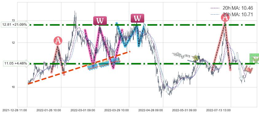♞ 20小时均线:10.46,30小时均线:10.71→ 快线<慢线