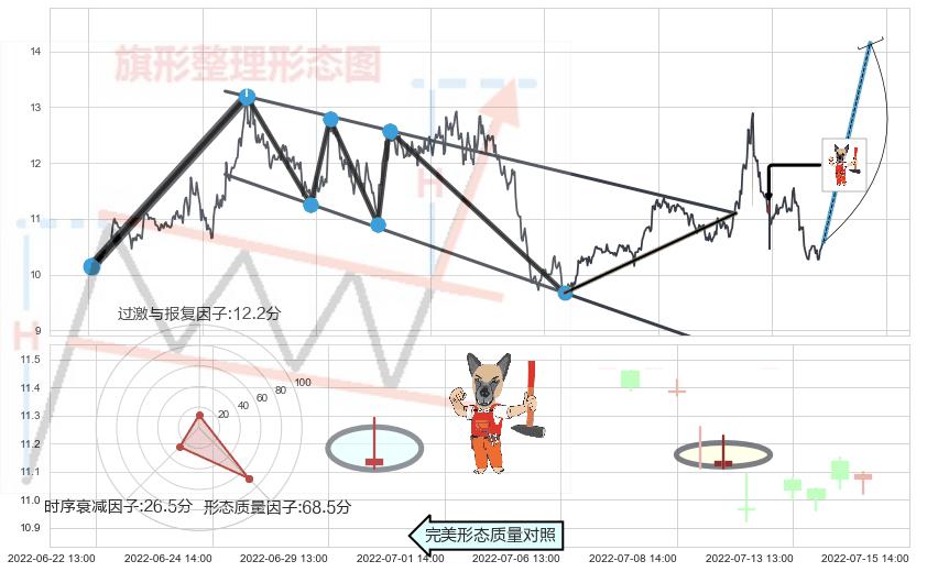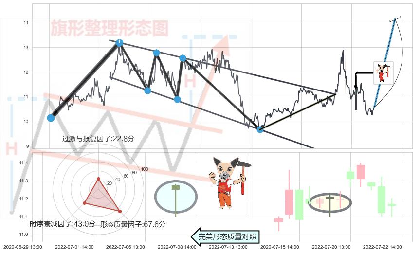 ➢ 🕰 价格走势在2022-07-11 14:00:00至2022-07-11 14:00:00期间形成看涨(低位)倒锤头线,残存影响值:2.33