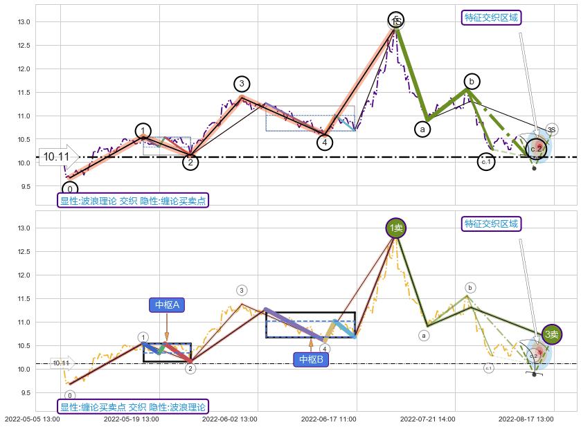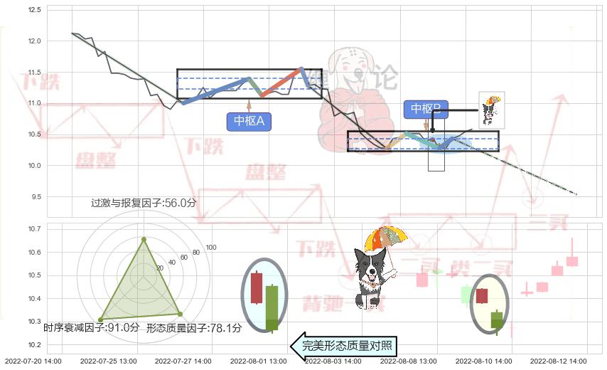 ➣ 缠论中枢点:猜想破位中枢B后持续下拉 → 下跌 → 破位中枢B支撑 → 持续趋势跟踪
