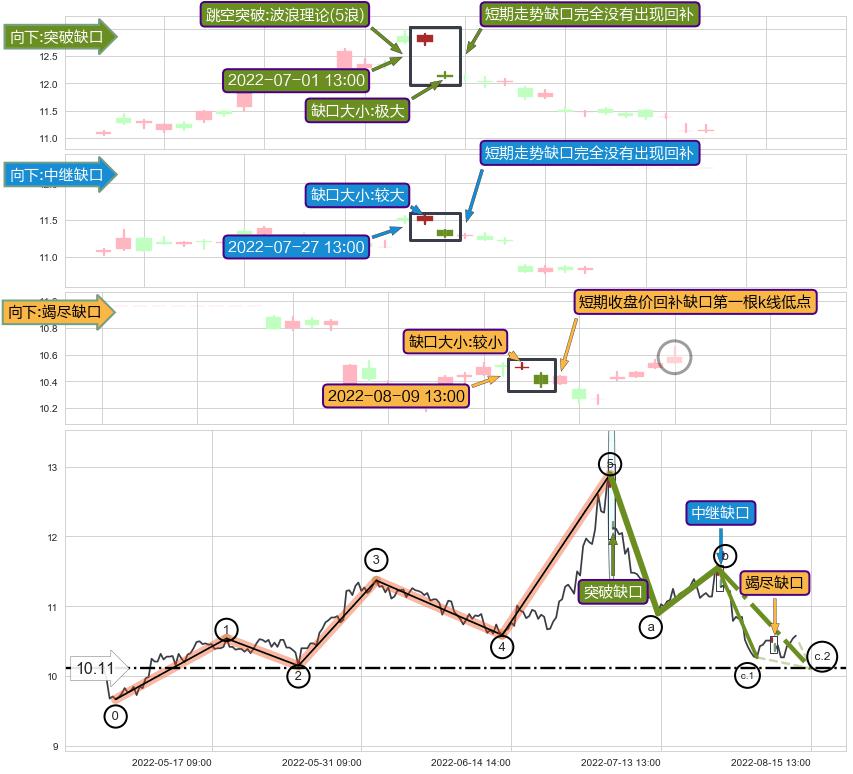 ➢ 2022-08-09 13:00形成:向下跳空【竭尽】缺口