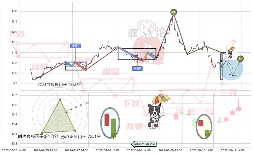 ➣ 【中枢B】:08-04:13-08-11:13,中枢由4笔构成,共11交易小时, ZG=10.43, ZD=10.27