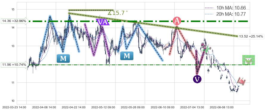 ♞ 10小时均线:10.66,20小时均线:10.77→ 快线<慢线