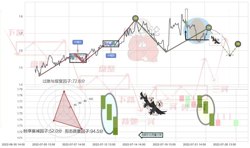 ➢ 🕰 价格走势在2022-07-21 13:00:00至2022-07-22 13:00:00期间形成三只乌鸦,残存影响值:-2.87