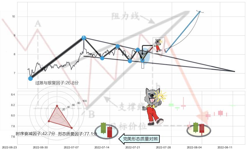 ♘ 支撑价格位7.46,可信任强度83.59%,距离最后交易2022-08-12 14:00形成的收盘价格8.15相差 -8.42%