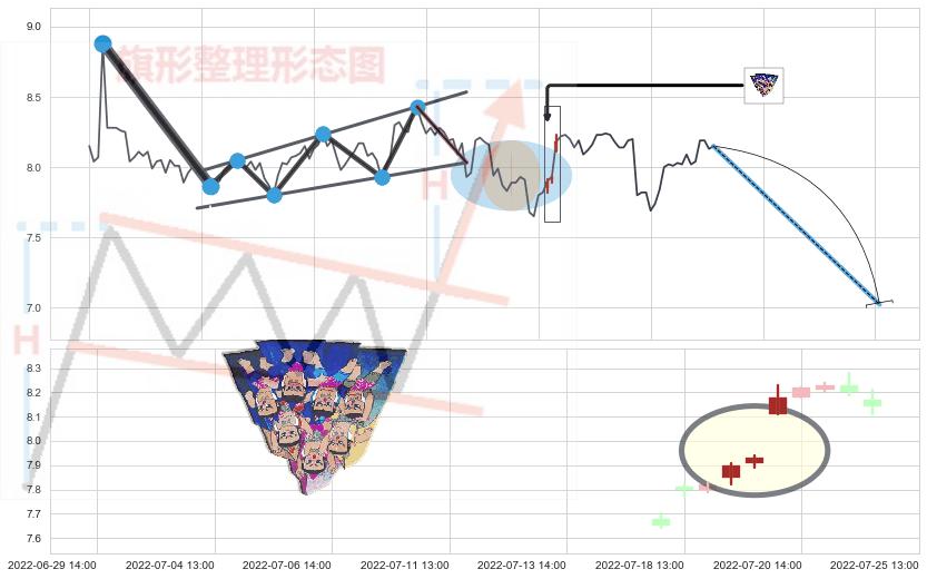 ➣ 【卖2】: 保守型 卖点→(07-22:13: 8.14 )形成升⚑旗形突破后的【回抽确认】