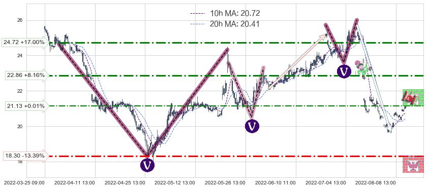 ♘ 阻力价格位22.86,可信任强度62.38%,距离最后交易2022-08-12 14:00形成的收盘价格21.13相差 +8.16%