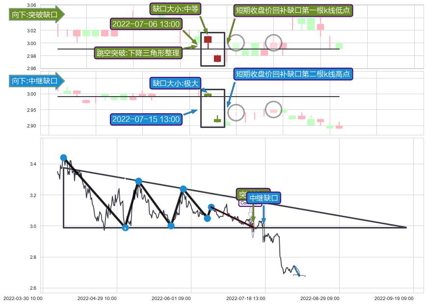 ➢ 2022-07-15 13:00形成:向下跳空【中继】缺口