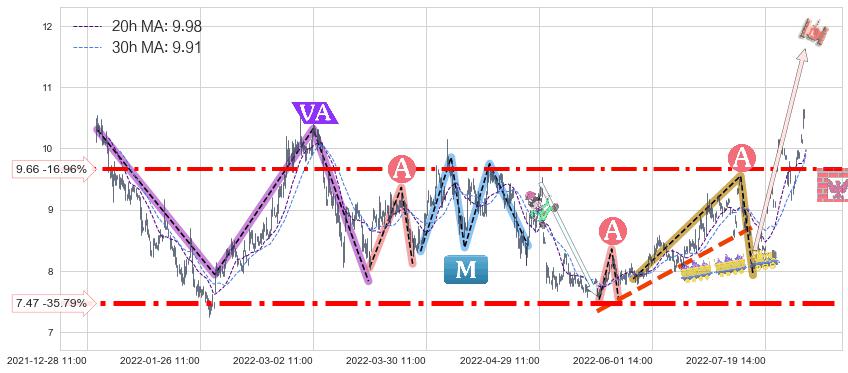 ♘ 支撑价格位7.47,可信任强度88.03%,距离最后交易2022-08-12 14:00形成的收盘价格11.63相差 -35.79%
