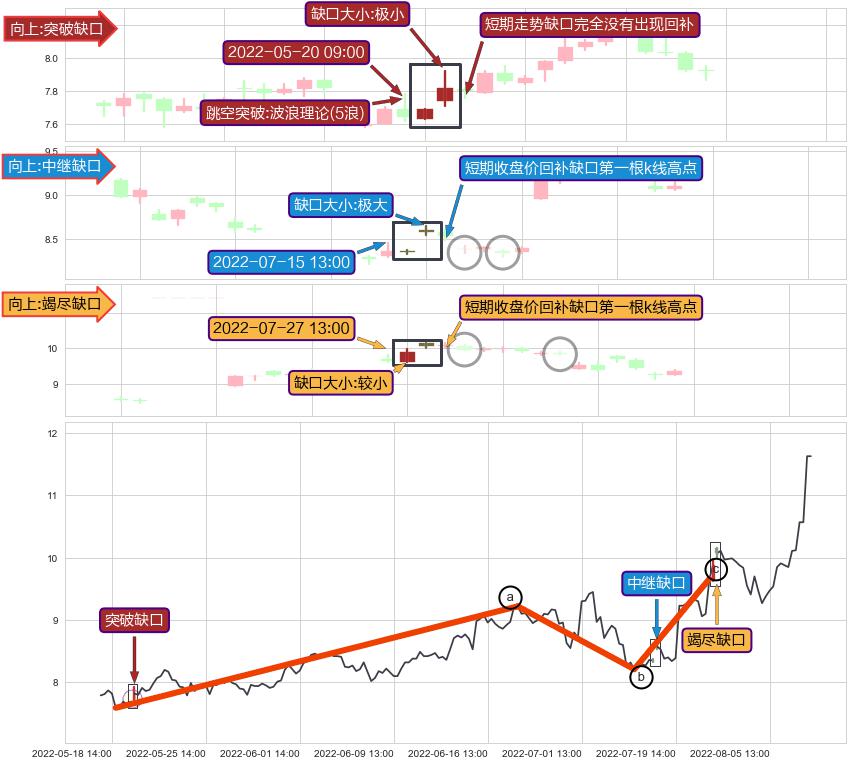➢ 2022-07-27 13:00形成:向上跳空【竭尽】缺口