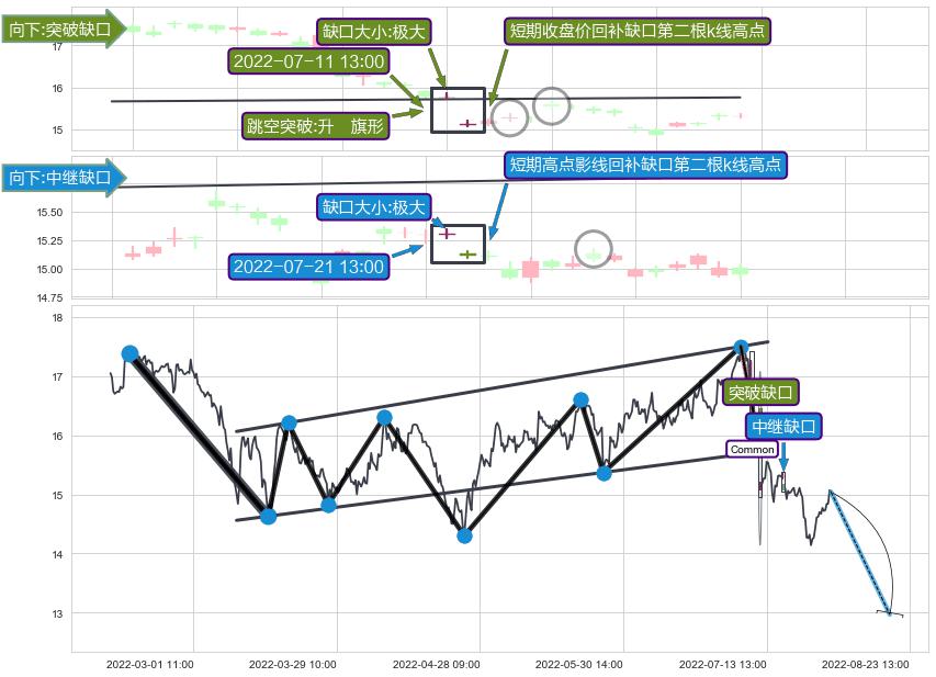 ➢ 2022-08-02 13:00形成:向下跳空【竭尽】缺口