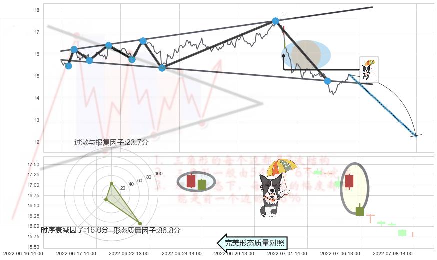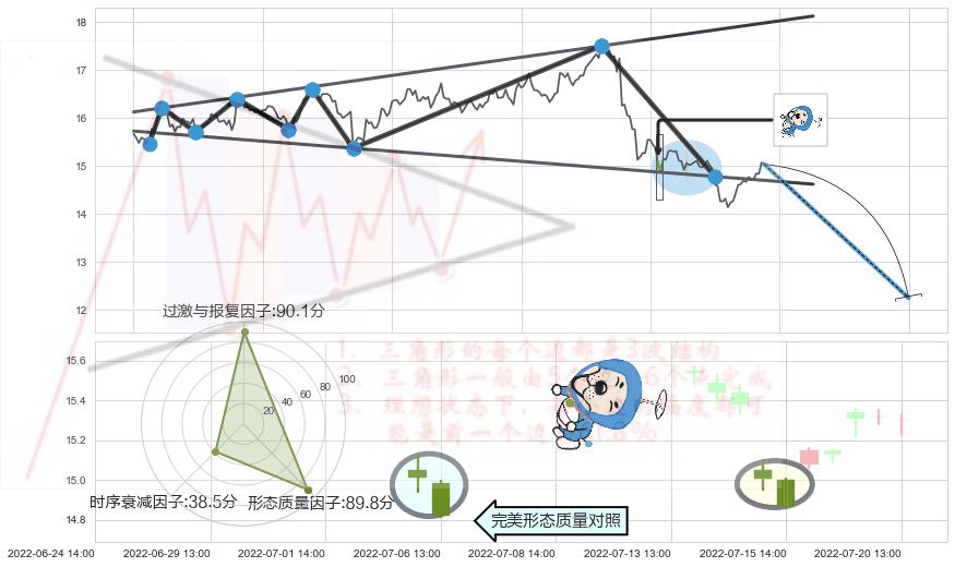 ➢ 🕰 价格走势在2022-07-15 13:00:00至2022-07-15 14:00:00期间形成下跌螺旋桨,残存影响值:-5.64