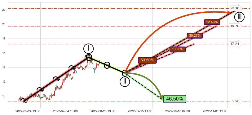 ➢ 循环浪继续向上【最高】位置(11-08:14, 22.18),匹配聚类样本比例23.23%, 可能性概率12.43%
