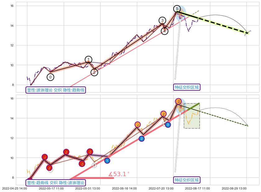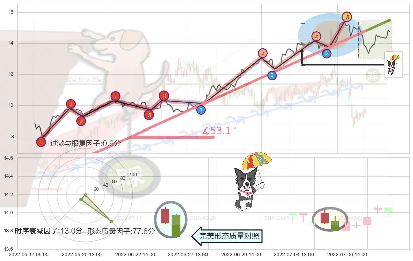 ➣ 2022-04-27 09:00-2022-08-03 13:00上升趋势存在反转[风险],虽然原上升趋势的支撑位(15.48)已破位,但其支撑效果尚存,原上升趋势角度: 53.1˚