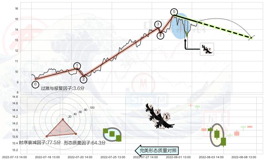 从2022-07-22 14:00至2022-08-12 14:00,共包含31个小时,阶段股价下跌-3.62%,阶段股价变动位移路程比: 1 : 10