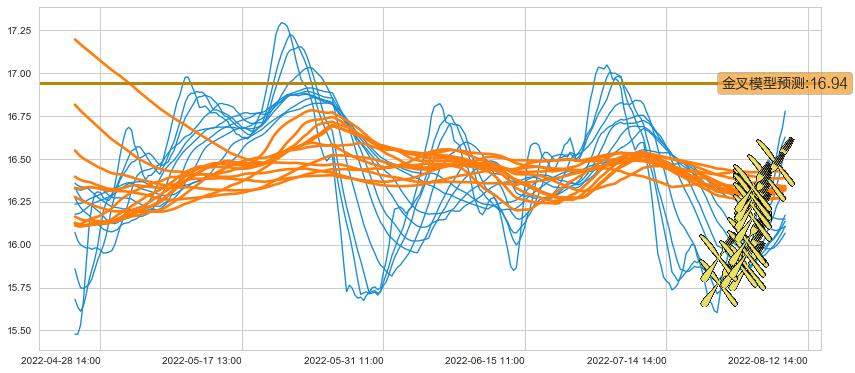 ➢ 100小时均线于(08-04 14:00: 16.27)形成【金叉】基于【金叉历史模型】预测金叉后最高波峰价格: 17.01, 金叉后最高价格16.97,尚未达到预测最高波峰价格, 预期继续上涨