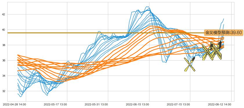 ➢ 60小时均线于(08-05 14:00: 37.51)形成【金叉】基于【金叉历史模型】预测金叉后最高波峰价格: 40.65, 金叉后最高价格42.37,已经上涨超出预测最高波峰价格, 预期回调