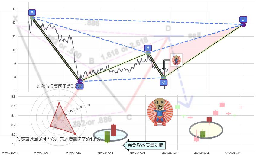 ➢ AB回撤位置在XA的44.4%,符合形态要求
