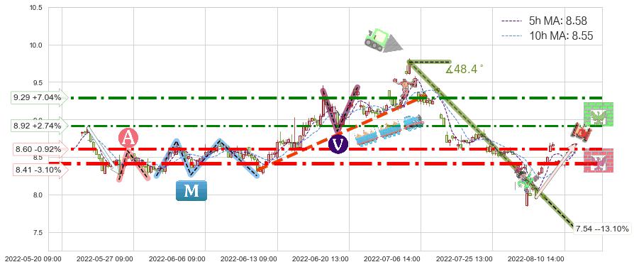 ♞ 5小时均线:8.58,10小时均线:8.55→ 快线>慢线