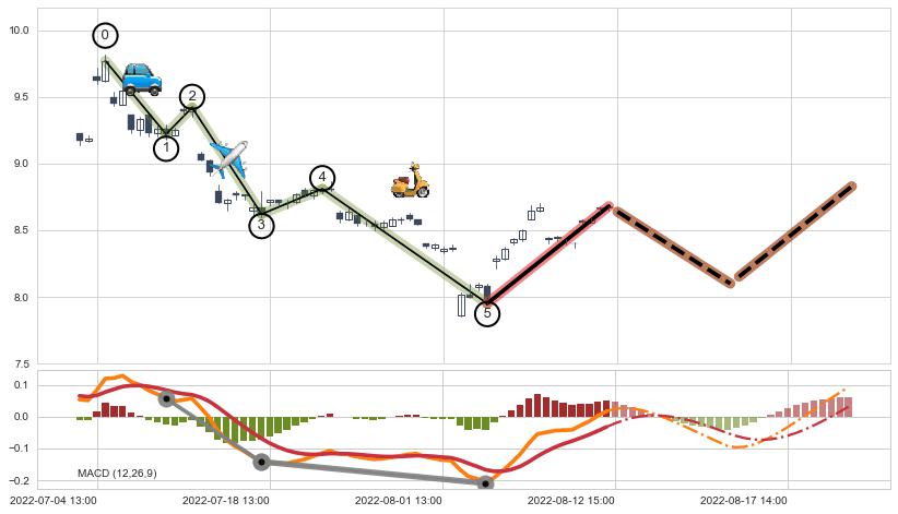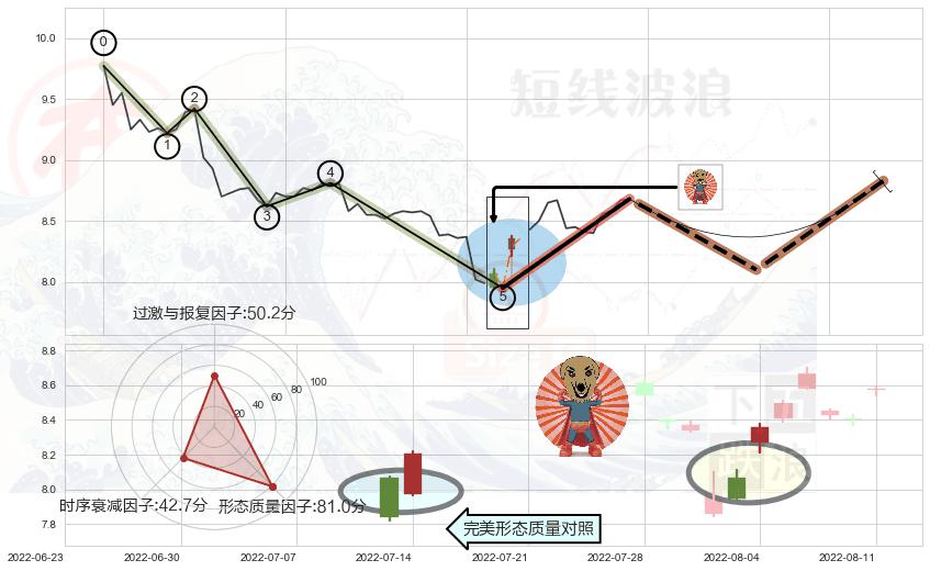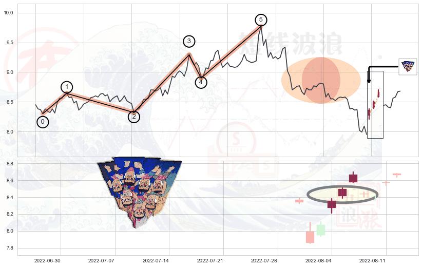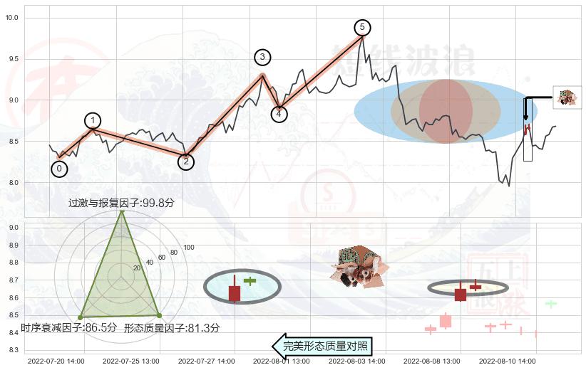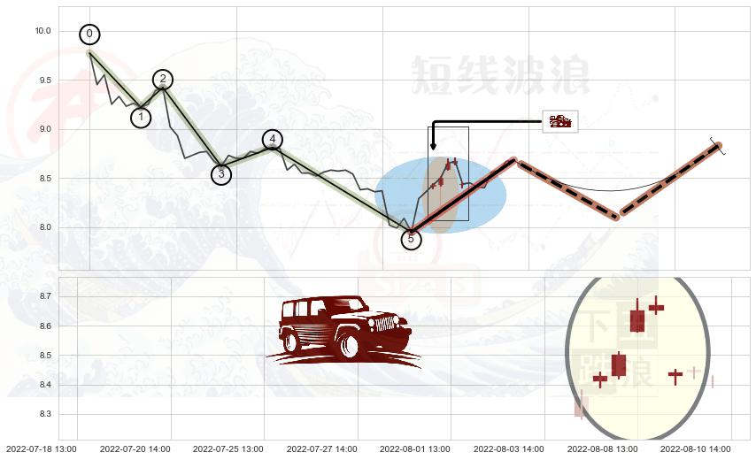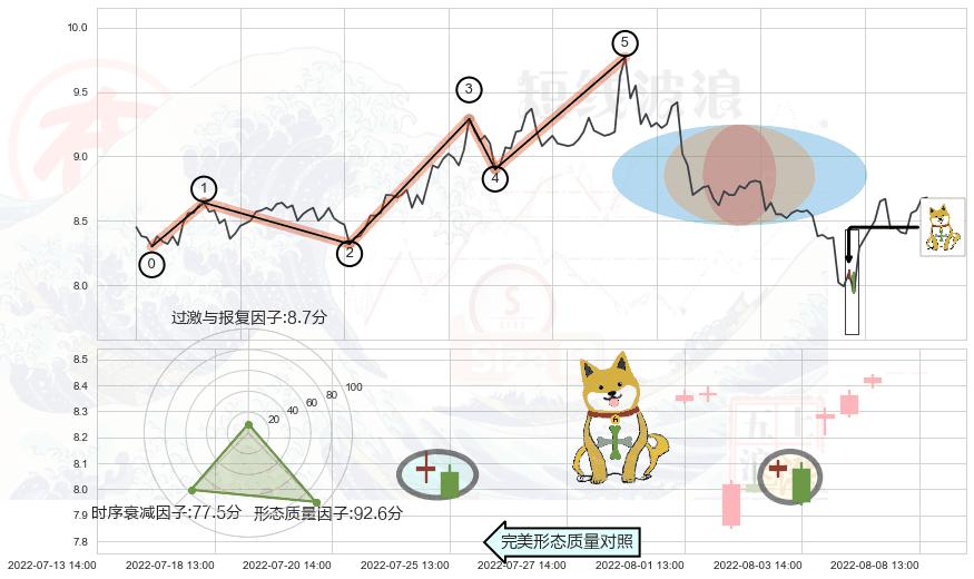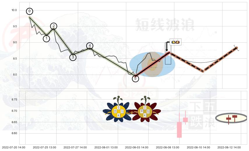 ➢ 🕰 价格走势在2022-08-05 13:00:00至2022-08-09 13:00:00期间形成低档五阳线,残存影响值:8.06
