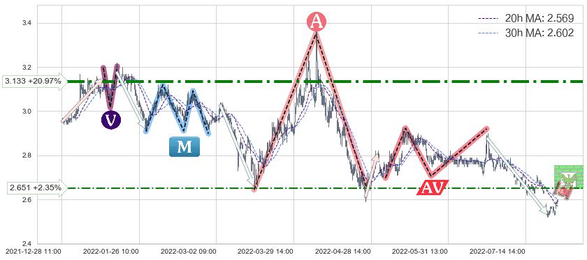 ♘ 阻力价格位2.651,可信任强度45.29%,距离最后交易2022-08-12 14:00形成的收盘价格2.590相差 +2.35%